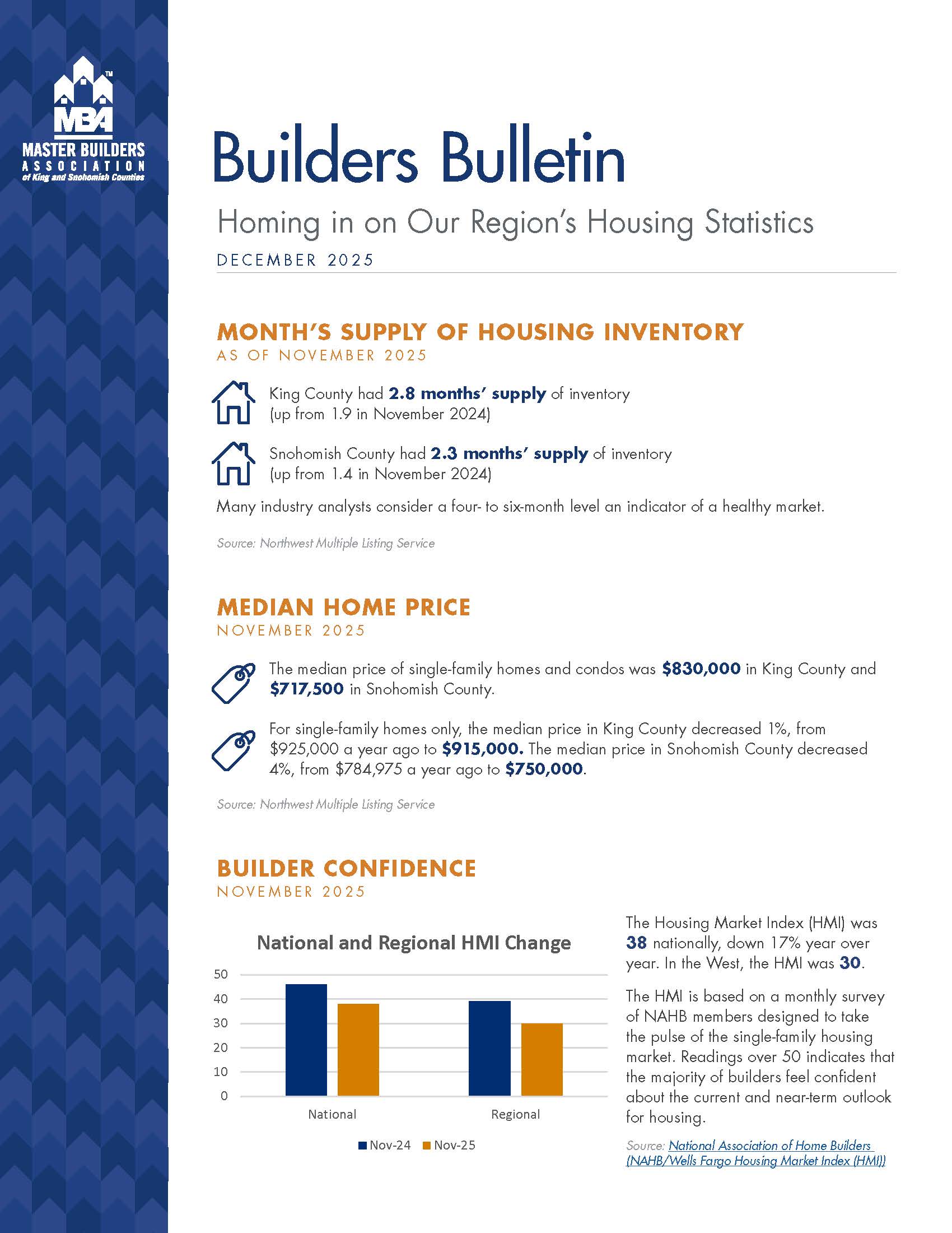 Mortgage rates continued to trend lower in November, with the 30-year fixed-rate mortgage (FRM) averaging 6.24% — the lowest level in over a year — while the 15-year averaged 5.51%. Rates remain down compared to a year ago, and the month also saw a slight uptick in the 10-year Treasury yield and ongoing market uncertainty reflected in the wider mortgage–Treasury spread.